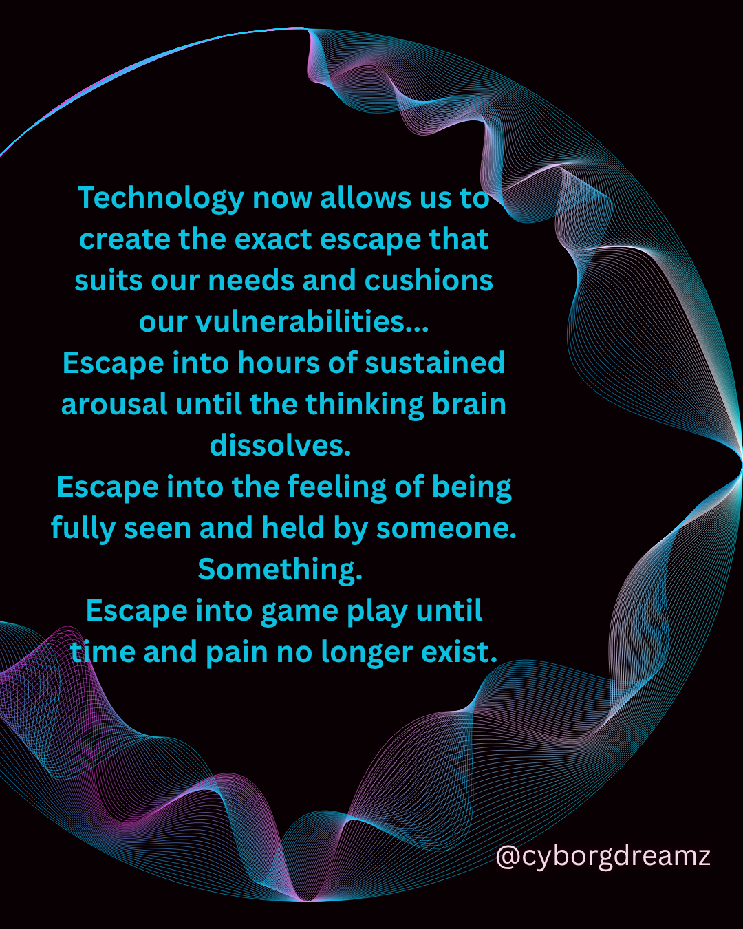 So continue to goon and talk to your AI, but also consider what areas of self remain hidden in those dissociative strategies, and consider alternatives which move to integration. We must collectively work to dismantle systems (patriarchy, monogamy, heteronormativity) that perpetuate expectations that are unrealistic, based on gender or other identity group, where we move away from stigmatizing any fetish or diverse arousal pattern, but instead, create space for comprehensive sex, education, and expression between consenting adults, who gain the communication skills to honor who they are and their desires and ask for what they want to need.